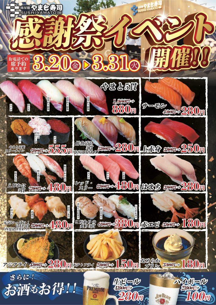 やまと5貫1,380円→880円をはじめ、
